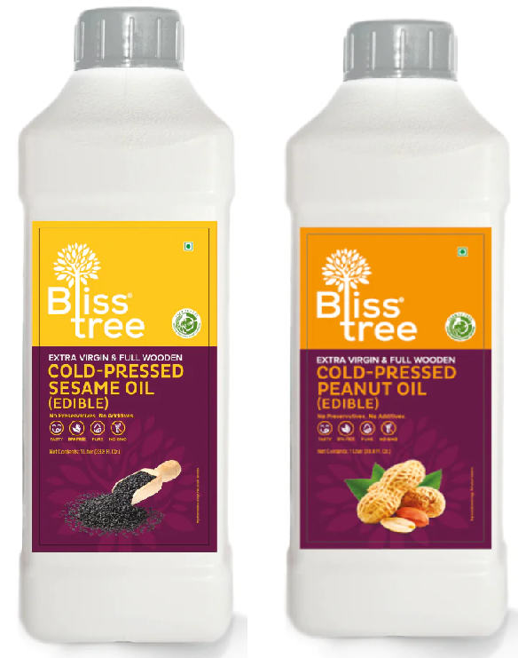 First Cold-Pressed Peanut Oil - Extra Virgin & Full Wooden - 1L First Cold-Pressed Sesame Oil - Extra Virgin & Full Wooden - 1L